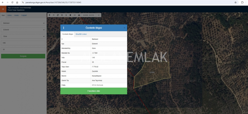 YATIRIMLIK 7.821 M2 ZEYTİNLİK.